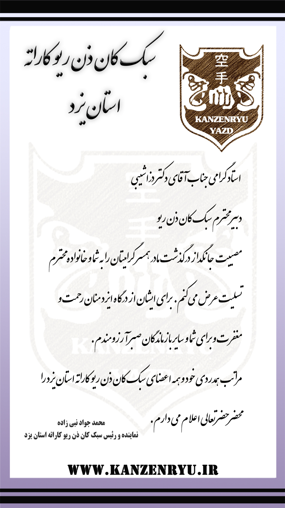 مراتب همدردی خود و همه اعضای سبک کان ذن ریو کاراته استان یزد را محضر حضرتعالی اعلام می دارم.