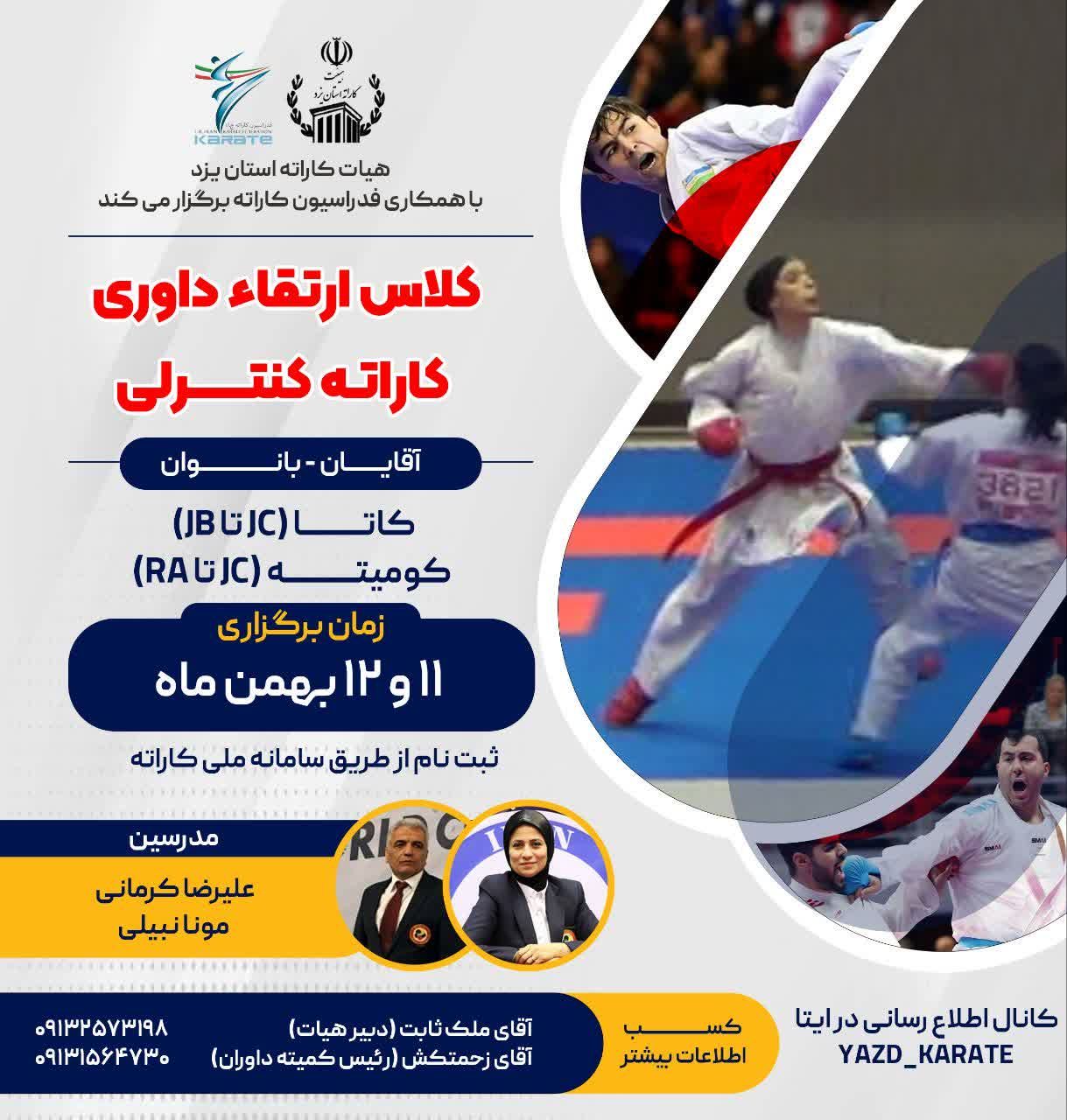 پوستر برگزاری کلاس ارتقاء داوری کاراته سبک های کنترلی استان یزد