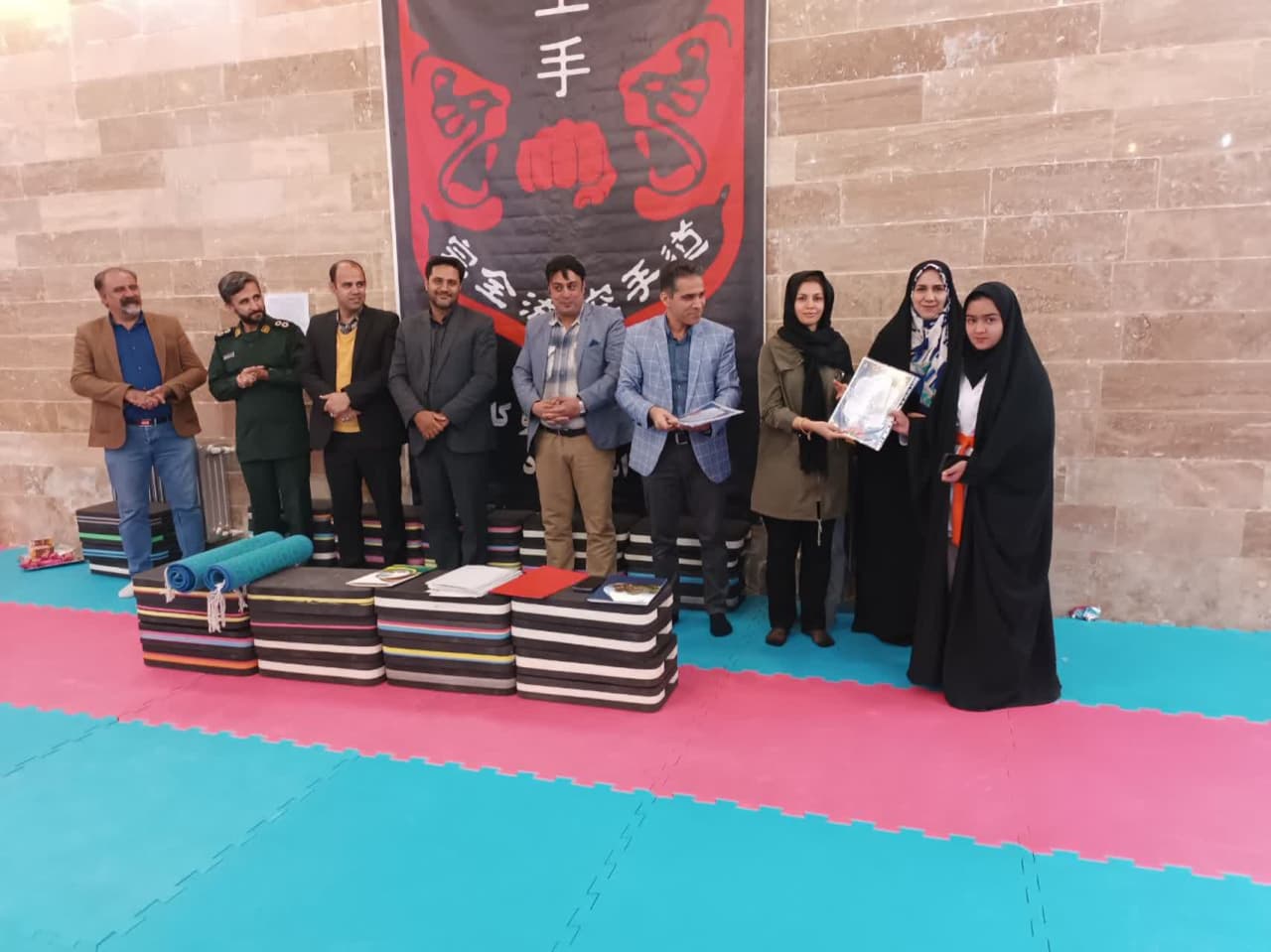 در این مراسم که رئیس هیئت کاراته شهرستان نیز حضور داشت، هدایا توسط نایب رئیس هیئت کاراته سرکار خانم نسرین نوفرد اهدا گردید.
