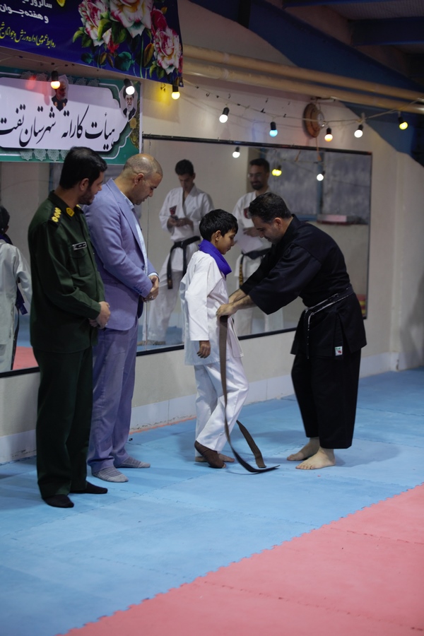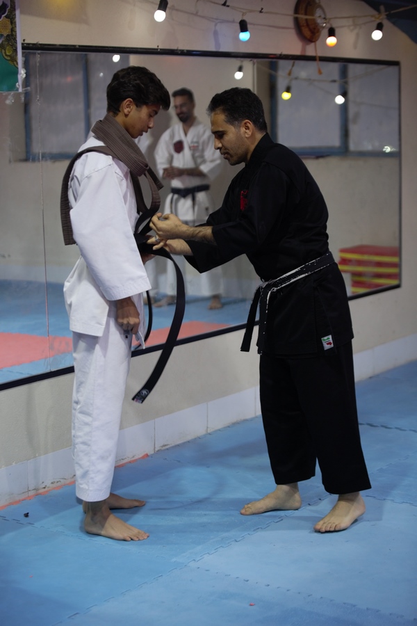 اهدای حکم و بستن کمربند هنرجویان کاراته سبک کان ذن ریو استان یزد