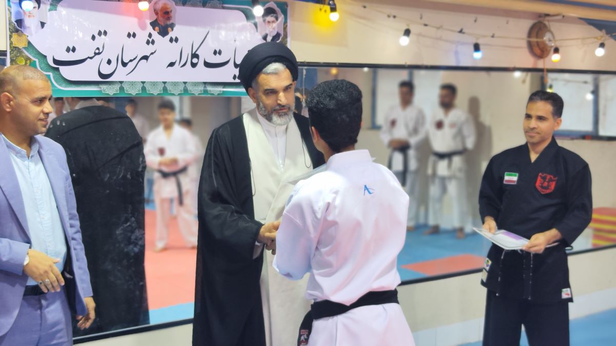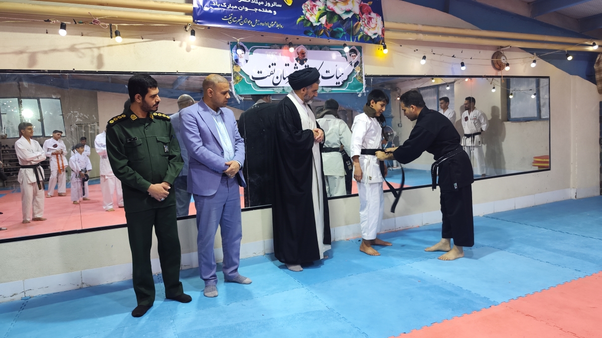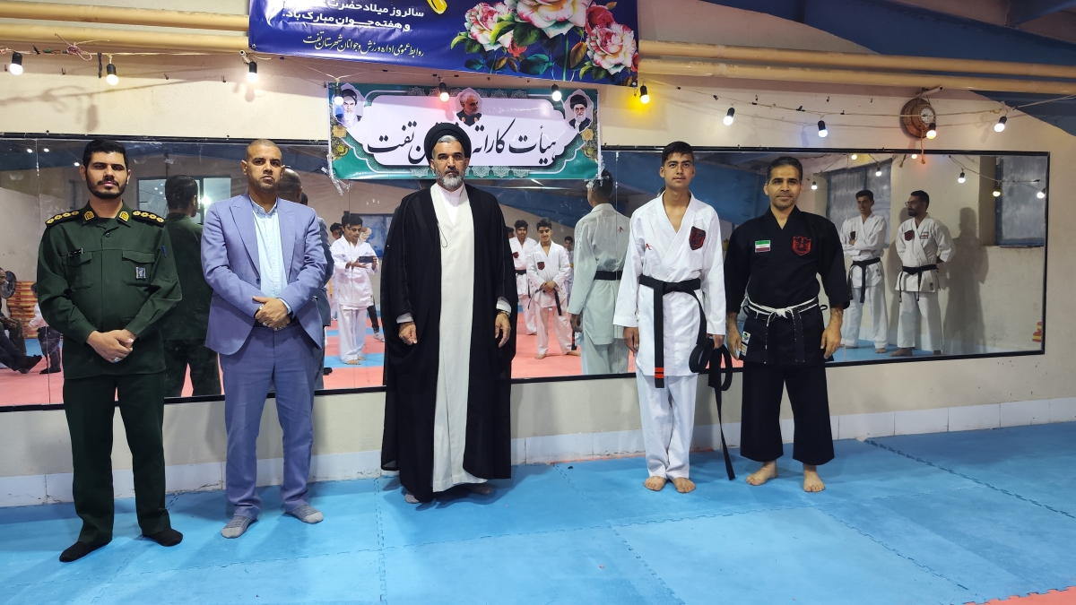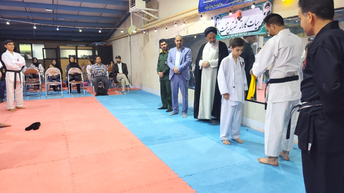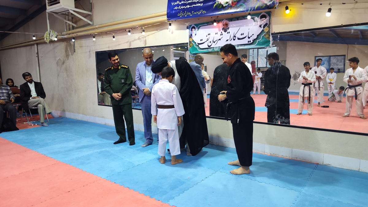 ✅به گزارش روابط عمومی اداره ورزش و جوانان شهرستان تفت، روز چهارشنبه ۲۶ مرداد 1401 برای اولین بار مراسم اهدای حکم و بستن کمربند هنرجویان کاراته نصرآباد تفت با حضور آقایان نیکو دهیار ، محمدجواد نبی زاده رئیس هیات کاراته شهرستان، خلیل زاده رئیس شورای اسلامی نصرآباد، حاج آقای مجلسی خیر محترم روستا و خانم ها نسرین نوفرد نائب رئیس هیات کاراته ، مسئولین موسسه آوای زندگی و نمایندگان ورزش روستا برگزار گردید.