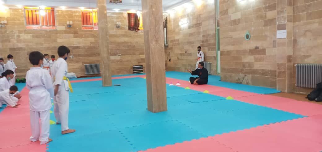 بستن کمربند هنرجویان کاراته سبک کان ذن ریو استان یزد