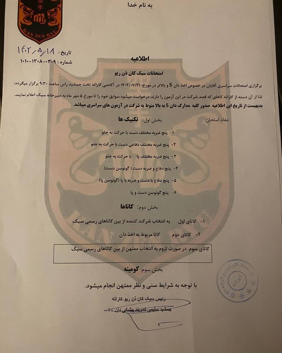 🔸این استاژ در بحث تئوری و در دو بخش کاتا و کومیته برگزار می شود و مدرس این دوره محمد رضا فلاح رئیس کمیته داوران هیئت خواهد بود.